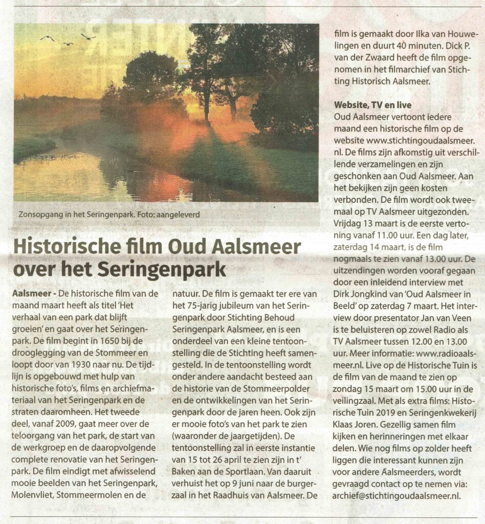De hele maand MAART is de film te zien via de website van Stichting Oud Aalsmeer